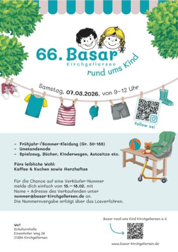Frühjahrs- und Sommerkleidung (Gr. 50–188), Umstandsmode, Spielzeug, Bücher, Kinderwagen und Autositze – alles an einem Ort. Für Kaffee, Kuchen und Herzhaftes ist gesorgt.